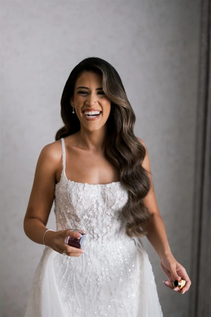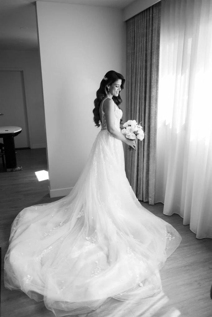 From an Instagram DM to a private boat proposal to a reception filled with love and energy, Real Bride Olivia and Raphael’s love story is absolutely swoon-worthy. A timeless black and white wedding venue made the dreamiest backdrop for Olivia’s glamorous bridal look—Martina Liana 1510 paired with a stunning overskirt for all the drama.Â