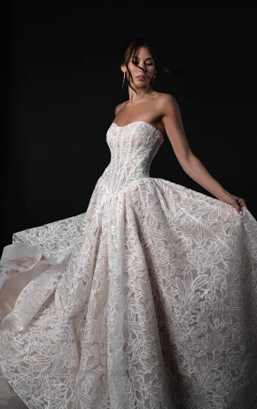 Risen from the creative vision of Head Designer and Chief Creative Officer Martine Harris and her international design team, Martina Liana has taken the world stage as a leading bridal fashion label– with the idea of giving every bride the chance to bring their unique visions to life through a couture designer experience. From glamorous, high-quality fabrics and glittering hand-placed beadwork, to artful laces and intricate florals– these details create elegant designs for the bride seeking a show-stopping fashion statement worthy of their love story.